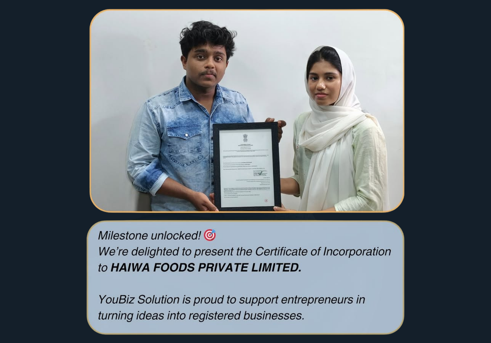 "YouBiz Solutions has been an exceptional partner for Haiwa Foods Pvt. Ltd. They handled all paperwork and legal documentation with precision and professionalism. Their customer support is outstanding, responsive, and reliable. Highly recommended for comprehensive business support services."
